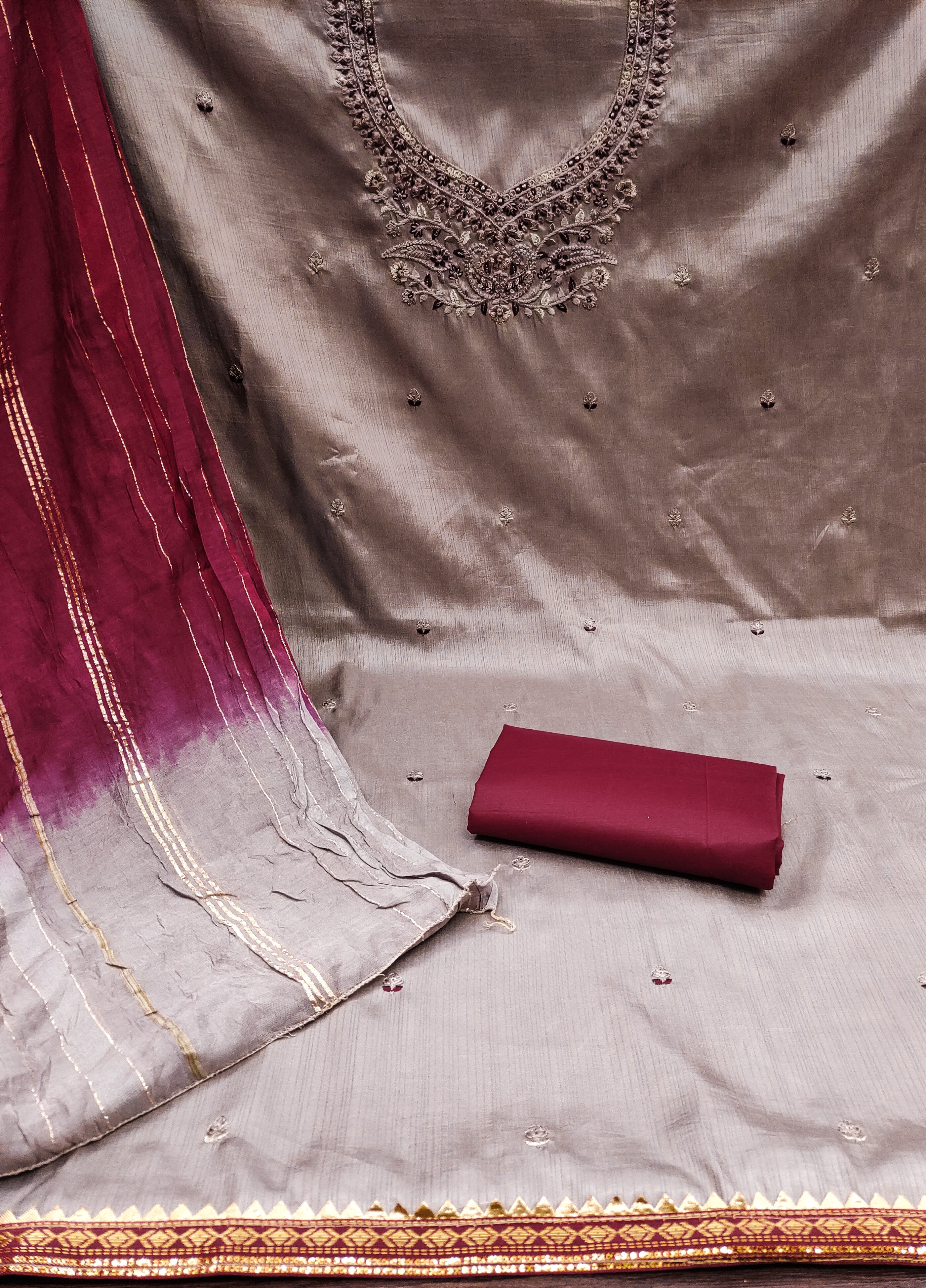 Beautiful Coco Silks Kurti Set with Jari Jacquard Saboori Print Dupatta