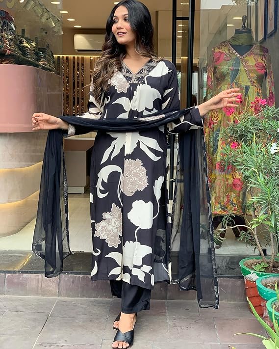 Dressing up made easy with this rayon Kurti, Pant with Dupatta!