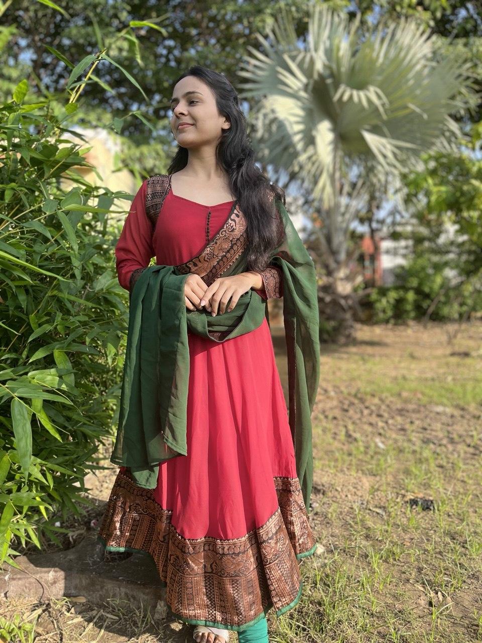 Elegant Maroon Georgette Anarkali Kurti with Green Dupatta