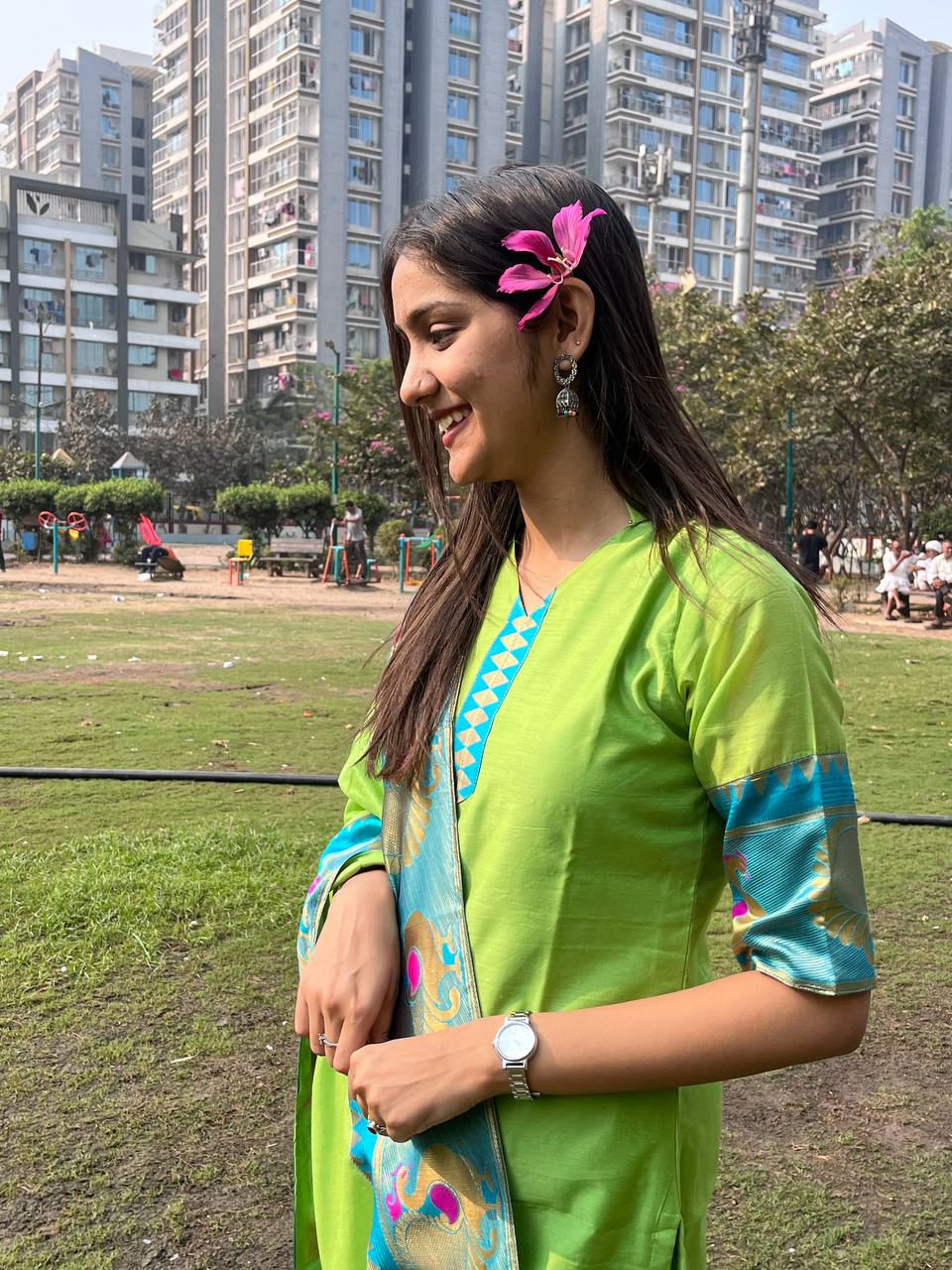 Light Green Chanderi Cotton Straight Fit Kurta Set with Jacquard Border