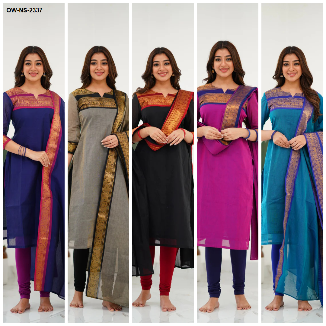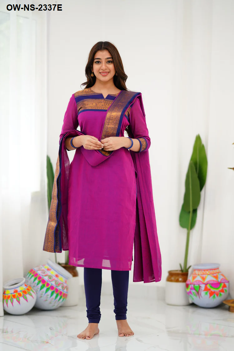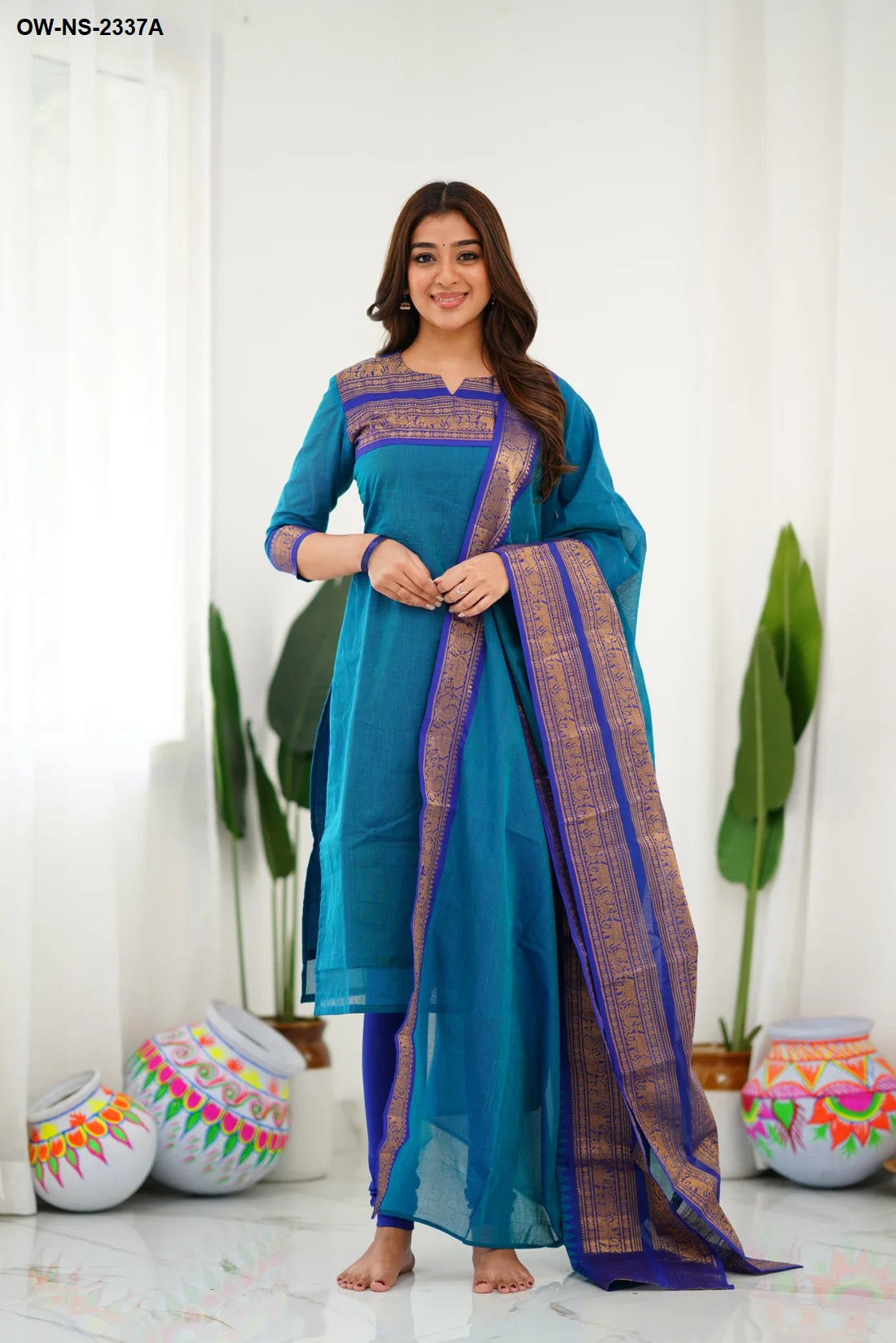 • Cotton Kurti and Dupatta with Intricate Weaving Work