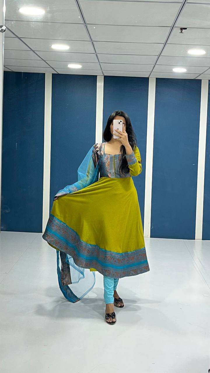 Festive Vichitra Silk Gown with Net Dupatta Festive Vichitra Silk Gown with Net Dupatta
